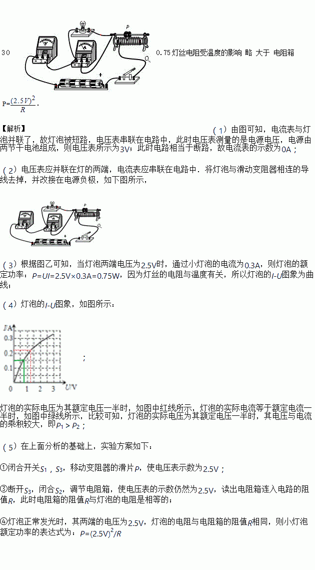 (4)小明想通过实验来比较灯泡“实际电压是额定电压一半时的电功率P1”和“实际电流是额定电流一半时的电功率P2”的大小,但小明的同学没有通过实验也比较出了它们的大小,P1应________P2(选填“大于”、“小于”或“等于”).