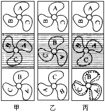 在光亮的瞬间,我们看到电扇叶片位于某一角度,如图 (甲)所示上图,而在黑暗的瞬间,我们就看不到电扇叶片,如(甲)的中图;等到下次再光亮时,如果电扇叶片恰巧转了如果在两次连续光亮的时间内,电扇叶片转了 如果在两次连续光亮的时间内,叶片所转的角度比上述角度稍小,例如