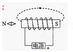 (3分)请利用图中给出的信息,在图中标出小磁针的N极、电源的正极,并用箭头标出磁感线的方向。