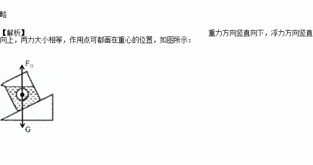 如图所示,斜面上有一装水的烧杯,烧杯内有一悬浮的小球,画出小球所受各力的示意图。
