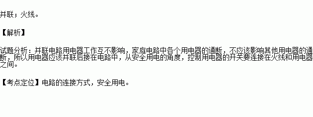 通常情况下,家庭电路中各个用电器的通断,不应该影响其他用电器的通断,所以用电器应该 (选填“串联”或“并联”)后接在电路中,控制用 电器的开关要连接在 (选填“火线”或“零线”)和用电器之间。