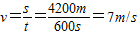 答:(1)行驶时间为10min;(2)速度为7m/s.