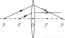 请在图中完成透镜的光路图.(F为透镜的焦点,P为2倍焦距处)