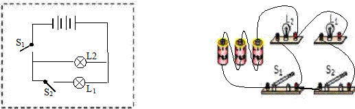 “两盏电灯互不影响”,说明两盏电灯并联;两只开关中一只控制电灯L