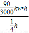 £¨2£©µçÄܱíÉϱêÓС°3000r/kw?h£¬¿ÉÇóµçÄܱíµÄÂÁÅÌת90תÏûºÄµÄµçÄÜ£¬¸ù¾Ý¹«Ê½P=