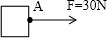 解:拉力的方向是水平向右的,作用点在A点,过A点沿水平向右的方向画一条带箭头的线段,并用符号F表示,大小为30N;如下图所示: