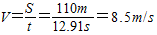 D、奥运冠军刘翔用12秒91跑完110米栏,速度