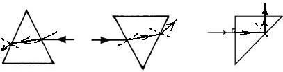 7、作出图中平行于三棱镜底部的入射光线经过两次折射后的大致方向.