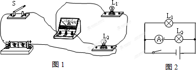 然后把L1并联在电流表与L2串联电路两端,实物电路图如图1所示;