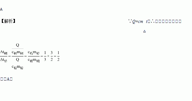 初温相同的铜和铅,它们的比热容之比是3:1,质量之比是2:3,若它们吸收相等的热量,铜升高的温度与铅升高的温度之比是( )