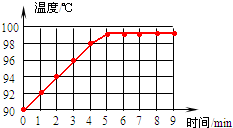 在“观察水的沸腾”实验中,当水温升到90℃时,继续加热,每隔1min记录一次水的温度.小红同学记录的数据如下表:
