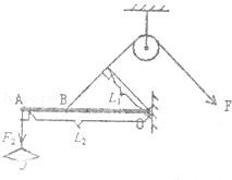 某剧组为拍摄需要,设计了如图所示的装置来改变照明灯的高度.轻质杠杆ABO可绕O点转动,在图中画出ABO所受阻力F2的示意图,并画出动力臂L1和阻力臂L2.