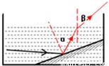 在水池的一角有一块平面镜,现有一束光线从水中射向平面镜,如图,请完成光路图,并标出反射角(用“α”表示)和折射角(用“β”表示)