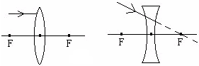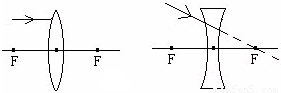 ②延长线过另一侧焦点的光线经凹透镜折射后将平行于主光轴.如下图所示: