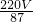 其余87盏灯串联接在220V的电源上,每盏灯两端的电压: