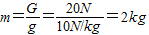 (2)∵G=mg=20N,