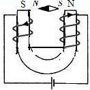 分析:由小磁针的N极指向可知小磁针所在位置的磁感线方向,则根据电磁铁外部磁感线的特点可知电磁铁的磁极,则由右手螺旋定则可得出电源的正负极及图中导线的绕法.