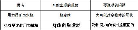 解答:解:因为力的作用是相互的,故当人用力推墙时,墙也会给人一个向相反方向的力,答案如下表所示.