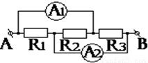 如图所示R1的电流为0.5A,A1表的示数为1.4A,A2表的示数为1.5A.则通过R2的电流大小为________A,通过R3的电流为________A.