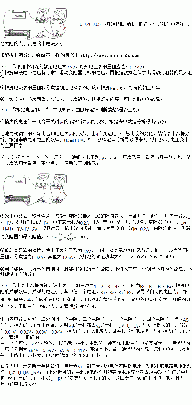 (1)要测量小灯泡的额定功率,实验室提供的器材有:标有“2.5V”的小灯泡、电池组(电压为3V)、电压表、电流表、滑动变阻器、开关、导线若干.