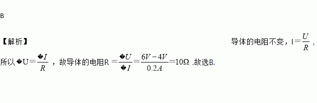 一只电阻两端的电压从4 V增加到6 V,通过它的电流增加了0.2 A,则该电阻的阻值为( )