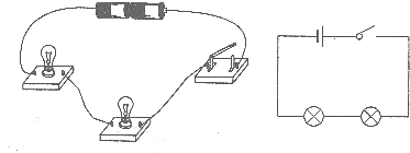 如图所示的电池和两个小灯泡,将它们组成串联电路,并画出电路图.