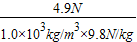 ∴F浮=G-F示=14.7N-9.8N=4.9N,