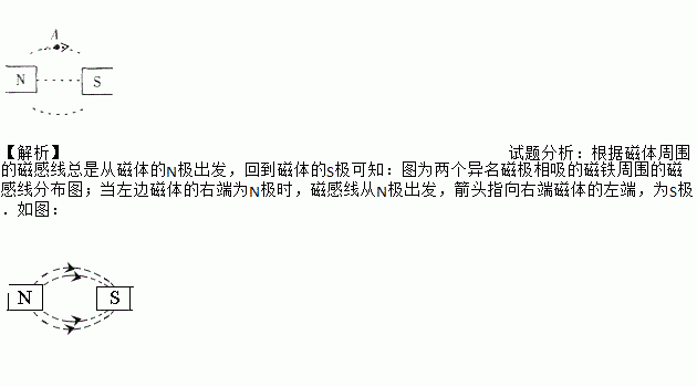 如图所示,N和S为两个磁体的磁极,请标出图中A点的磁场方向.
