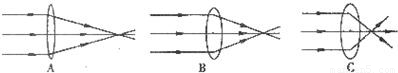 解答:解:凸透镜对光线有会聚作用,如下图所示:A透镜其焦距越大,对光的偏折就越小,C透镜焦距越小,对光的偏折就越大,即对光的会聚作用越强.