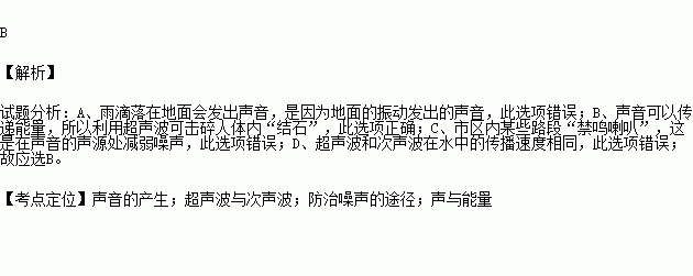 A.雨滴落在地面上会发出声音,说明物体不振动也可以发声