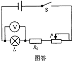 答:(1)将灯泡、电阻R0、滑动变阻器串联,电压表先与灯泡并联,如图所示: