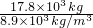 某城市有一座铜雕塑,已知其质量为17.8t,它的体积是多少?(铜的密度8.9×103kg/m3)