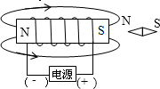 (2)根据螺线管的右端为S极,以及线圈的绕向利用安培定则可以确定螺线管中电流是从螺线管的左端流入右端流出.