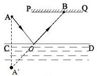 如图所示为水位测量仪的示意图,从A点发出一束方向不变的光线,经水面反射后,在固定光屏PQ上形成一个光斑,光斑的位置随水位的变化而发生变化.当水面在CD时,屏上的光斑移到了B点.请根据平面镜成像的特点作出光路图(保留作图痕迹).