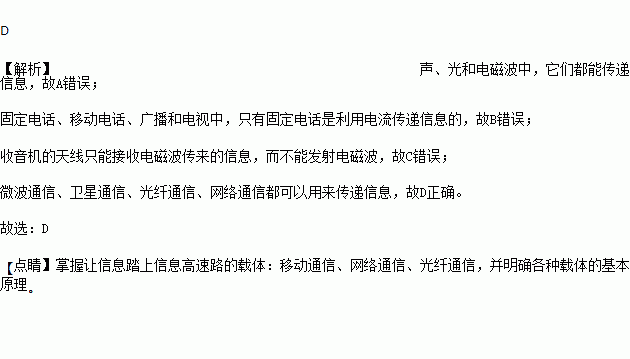 D. 微波通信、卫星通信、光纤通信、网络通信都可以用来传递信息
