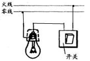 请用连线的方式把图中螺口灯泡与按钮开关正确接入电路。