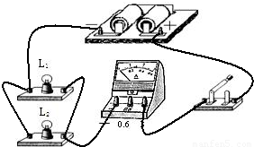 按要求把图的实物元件连接起来,使小灯泡L1和L2并联,电流表测量电路的总电流,开关控制整个电路.已知灯泡L1和L2中的电流均为0.5A.