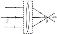 如图所示是平行光线穿过透镜发生折射的情况,请在方框内填入适当的元件.
