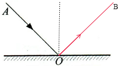 解:首先做出法线,根据光的反射定律中的反射角等于入射角,反射光线和入射光线分居法线两侧,可以做出对应的反射光线OB.