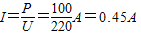 碘钨灯是一种新型电光源,一种照明用的碘钨灯工作电压是220V,额定功率是100W.该灯正常工作时,以通过灯为电流为 A;每秒消耗的电能是 J.