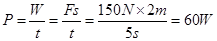 试题分析:本题的滑轮组中,拉力移动距离是物体上升高度的2倍,物体上升1m,拉力移动2m。功率是功与完成功所用时间的比值,拉力的功率为