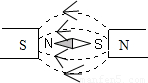 【答案】分析:由同名磁极相互排斥,异名磁极相互吸引知,左边的磁极为S极,右边的磁极为N,磁感线在磁体外部是从N极出发回到S极;