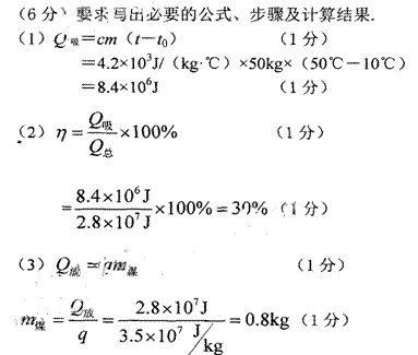 (3)若用煤燃烧来提供2.8×107J的热量,需完全燃烧多少千克煤?(煤的热值约为3.5×107J/kg)