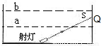 某校新建成一个喷水池,在池底中央安装了一盏射灯.池内无水时,射灯发出的一束光照在池壁上的S点.(如图)现往池内注水,水面上升到a位置时,光照射在池壁上的P点;如果水面上升到b位置时,光照射到池壁的Q点.则( )A.P点在S点的上方,Q点在S点的上方