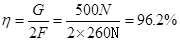 点评:了解和掌握滑轮组的机械效率的计算方法是此题的关键。注意滑轮组承担物体重力绳子段数。