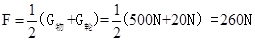 小明家新买的房子准备装修,为了将水泥从地面送上楼,他在楼上安装了一个滑轮组,图中所用的滑轮每只 2kg ,每次将一袋 50kg的水泥提升5m.(不计绳重和摩擦,g 取10N/kg)求:![]()