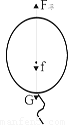 如右下图所示,是一个重1N、体积为0.1m3的氢气球在地面附近沿竖直方向匀速升空的照片,请画出它受力的示意图(地面附近空气的密度为1.29kg/m3)。
