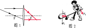 (1)入射光线平行于主光轴,该光线经凸透镜折射后过焦点;过焦点的光线经凸透镜折射后,平行于主光轴.如图所示: