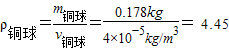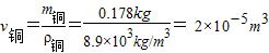 v空心=v铜球-v铜=4×10-5m3-2×10-5m3=2×10-5m3=20cm3;