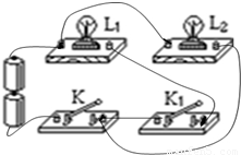 【答案】分析:根据电路图,分析清楚电路结构,然后按照各电路元件的连接方式连接实物电路图,注意两灯泡并联,开关K控制干路,开关K1接在L1的支路中.